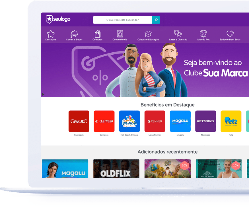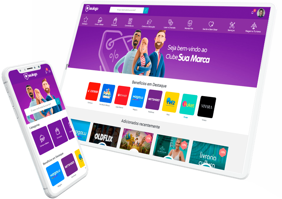 Funciona assim: personalizamos a plataforma com seu logo, suas cores e configuramos tudo para que ela seja acessada no seu endereço na internet e preparamos também um aplicativo exclusivo. Pronto! Em até 5 dias, sua empresa ou associação tem um clube 100% personalizado e pode disponibilizar para seus colaboradores, associados ou clientes!
